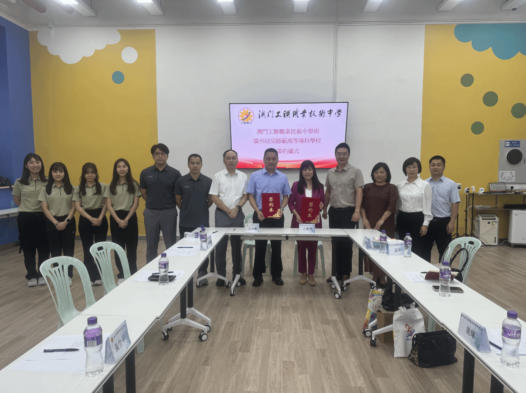 10月7日,代表团访问了澳门工联职业技术中学及其附属幼儿园🧑🏿🎄,澳门工联职业技术中学的校长吕吉实、副校长黄广联等七位领导和老师接待了代表团一行。双方就办学模式🤲🏻、职业教育与文化课教育的比例分配⛹🏿、学生升学等方面进行了充分的深度交流,探讨在职业教育人才培养、课程设置方面的经验和做法;代表团还参观了该校的附属幼儿园🫦🔂,观摩该校的幼儿课程、幼儿活动等。访问期间🐭,代表团与澳门工联职业技术中学正式签署“粤澳姊妹学校计划合作协议书”📭,以彩神8争霸为主体与澳门工联职业技术中学缔结为友好姐妹学校,共同建立教育合作关系。