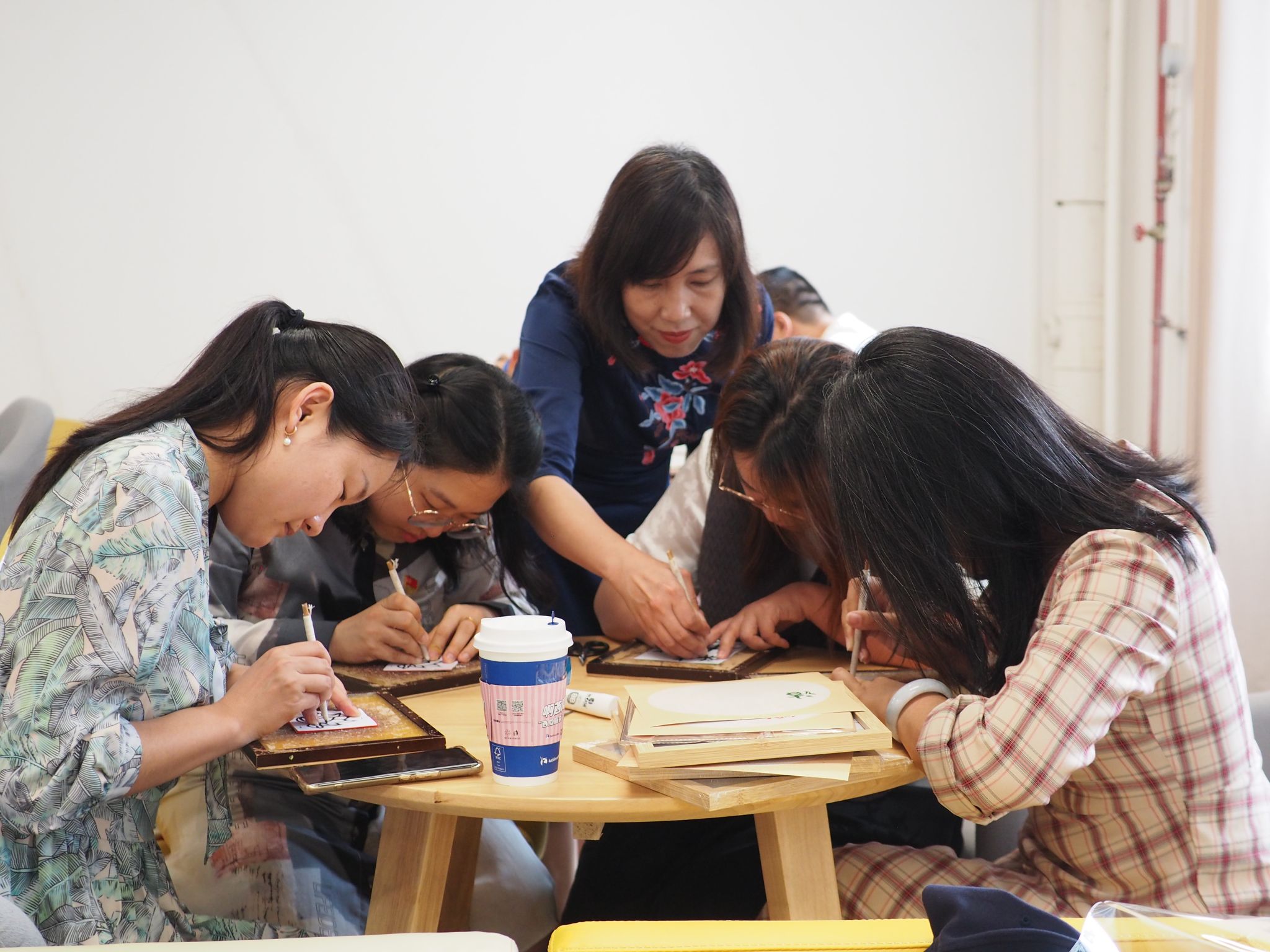 图为陈嘉彦老师现场指导党员教师进行剪纸创作