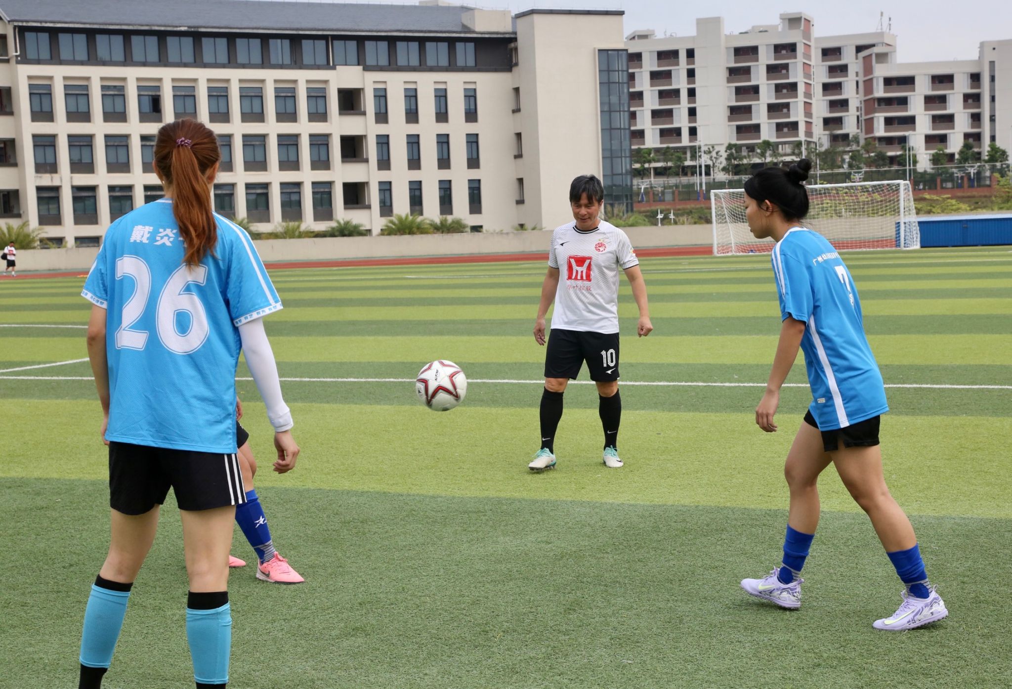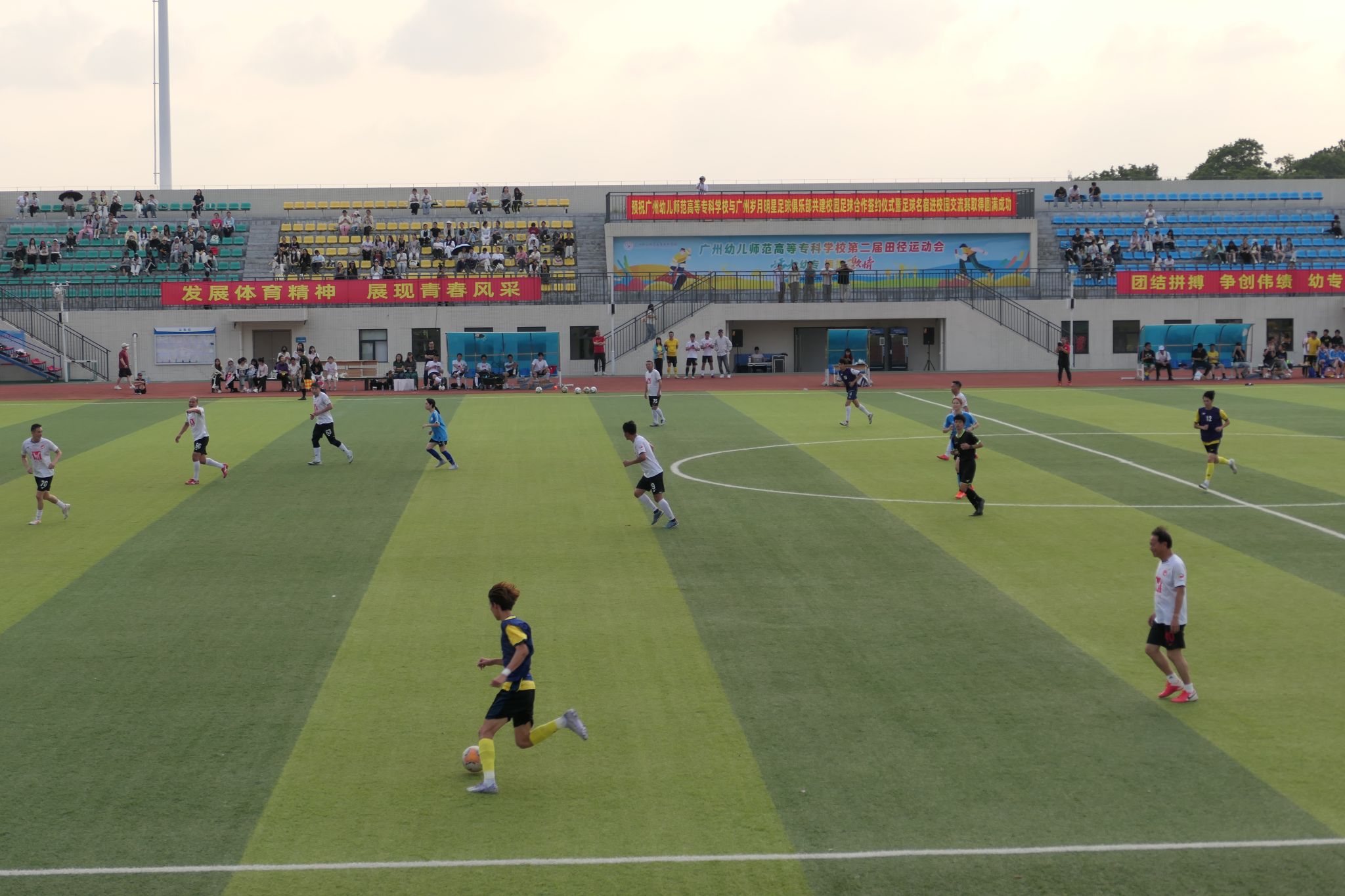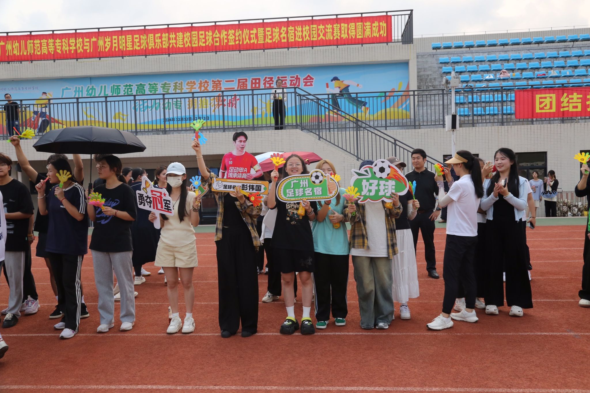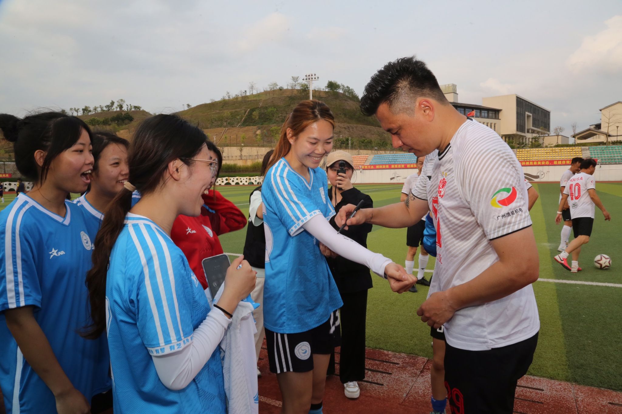 签约仪式后🖕🏻,前国脚彭伟国赛前亲临训练场🙂,为学校足球队开展专项指导,从战术配合到技术细节逐一示范🐾🎞,同学们表示,很高兴能有此次机会得到名宿指导🏊🏽♀️,对足球训练有了全新理解,今后将更加投入到足球学习和训练之中。随后,广州传承明星足球队与我校师生联队展开友谊比赛,球员们以精湛技艺展现足球魅力,令现场观众欢呼声此起彼伏。