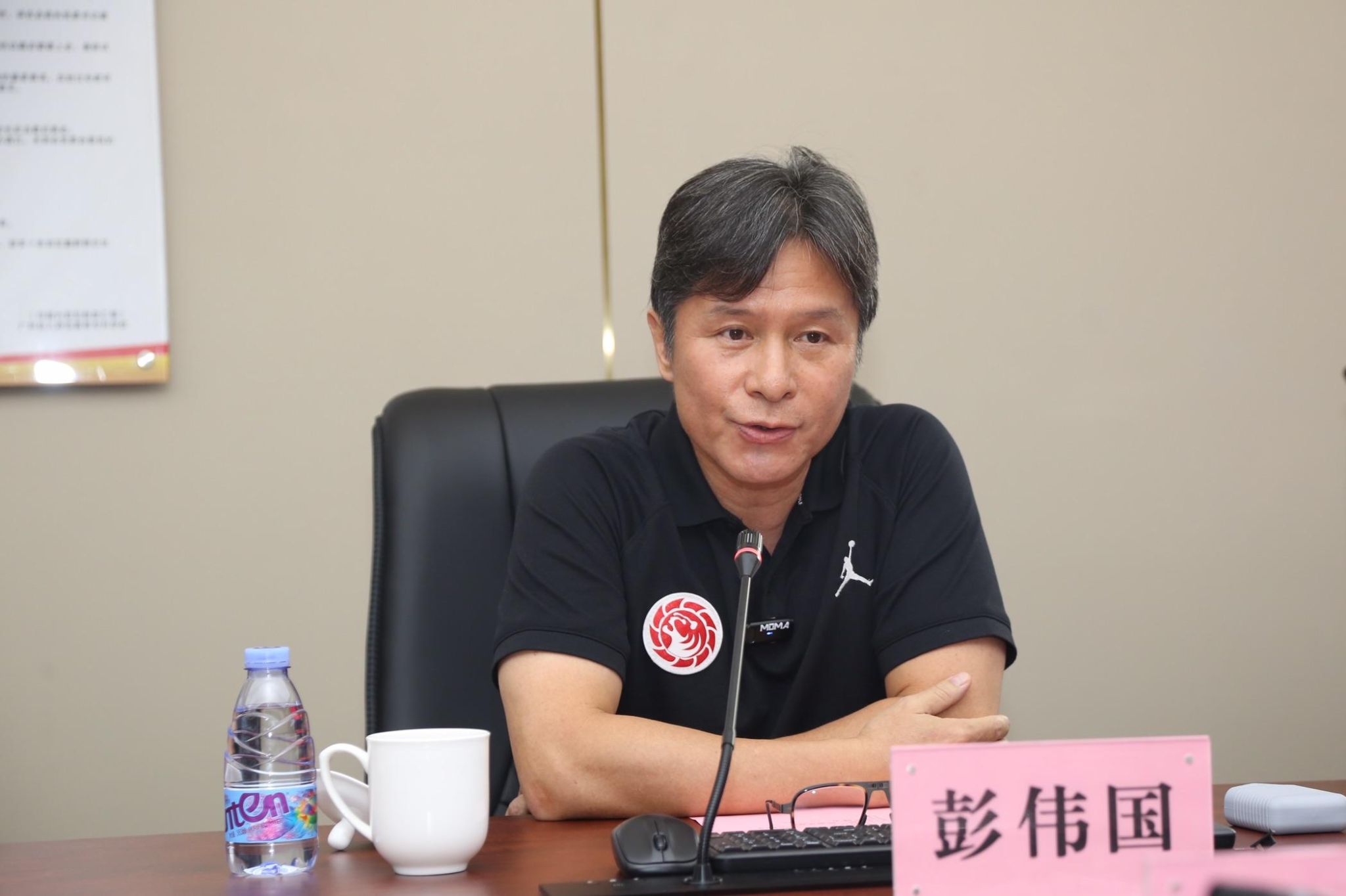 图为周穗安👨👨👦👦、彭伟国在会上发言