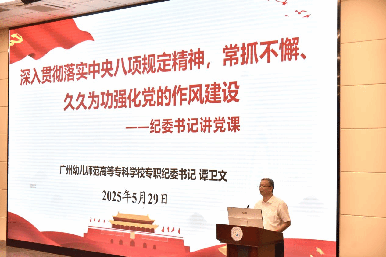 为扎实开展深入贯彻中央八项规定精神学习教育🕙,进一步提高学校党员干部理论素养,5月29日下午,学校专职纪委书记谭卫文围绕中央八项规定精神学习开展专题党课🤾🏽。学校全体党员参加此次专题党课🌕。