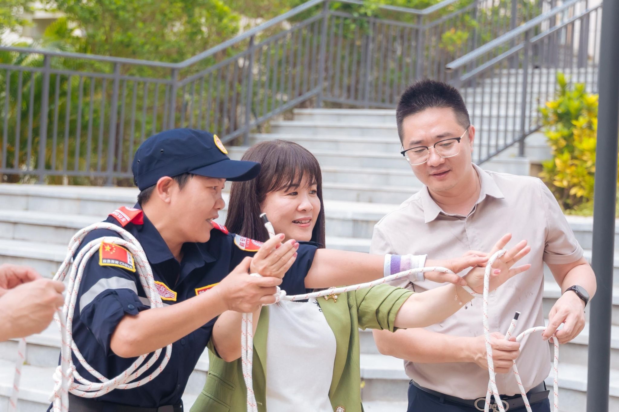 完成避险和疏散逃生演练之后,全体师生分批参与了应急逃生绳结、模拟烟道逃生🦝、安全隐患排查、心肺复苏等安全技能项目实操培训。其中,模拟烟道逃生通过高度还原的烟雾环境,训练师生在能见度极低情况下的逃生能力;应急逃生绳结教学让师生掌握了多种实用绳结的打法与应用场景,增强自救能力;安全隐患排查项目通过现场教学🏄🏿♀️🧙🏻,培养师生识别和消除安全隐患的能力🐴;心肺复苏培训则通过专业指导,确保每位参与者都能规范掌握急救技能。