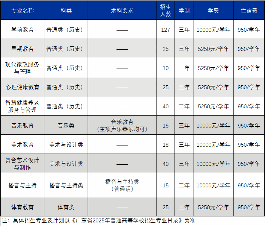 三年制招生专业(10个):包括学前教育、早期教育👨🚀、现代家政服务与管理👰🏼、心理健康教育、智慧健康养老服务与管理、音乐教育、美术教育🧚🏻♂️🧑🍼、舞台艺术设计与制作、播音与主持、体育教育0️⃣,考生需达广东省专科批次控制线,按“志愿优先”原则录取,建议第一志愿填报以提高录取概率。