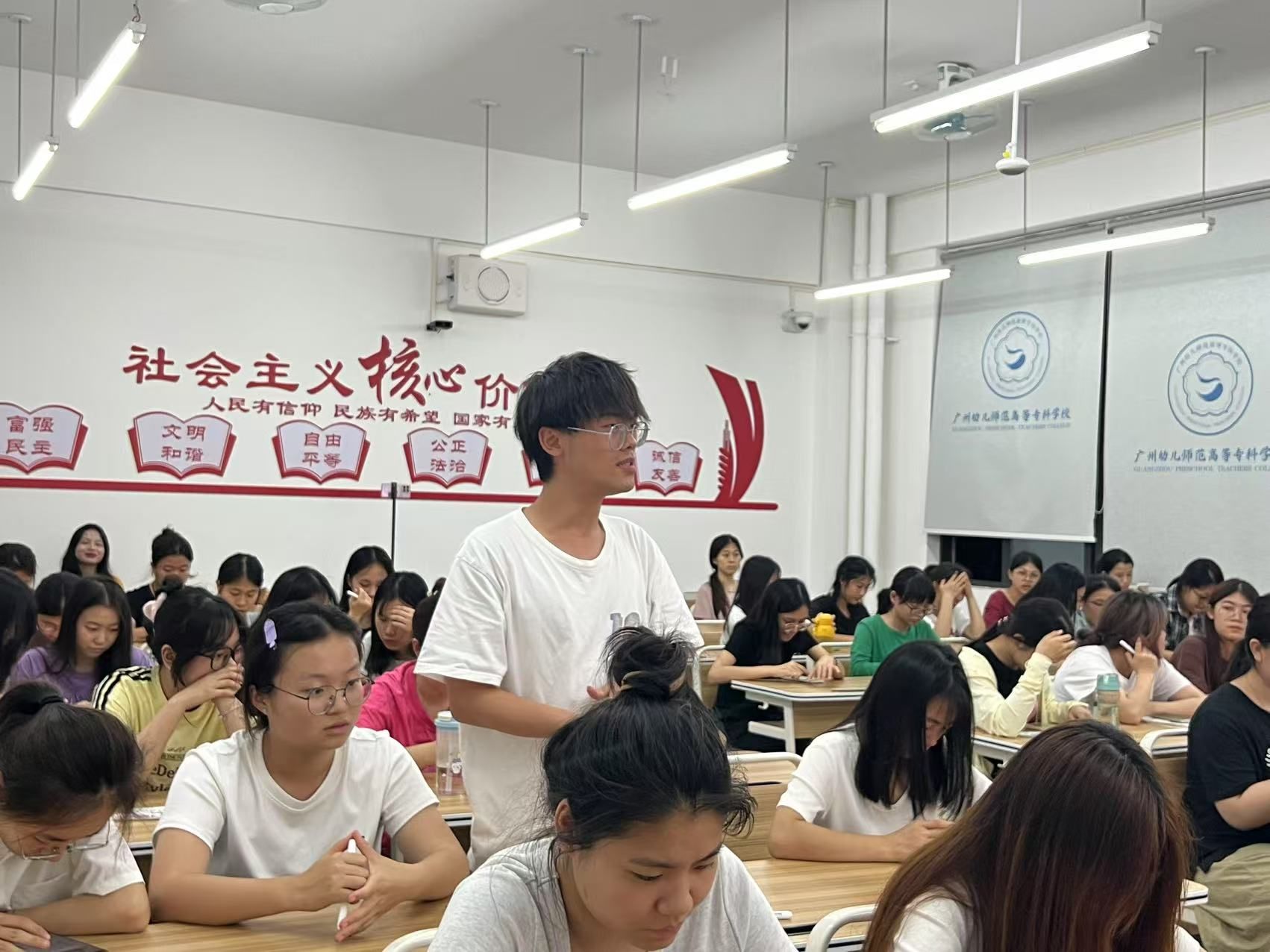 2023级学前教育专业李彩虹正在讲解破冰游戏规则